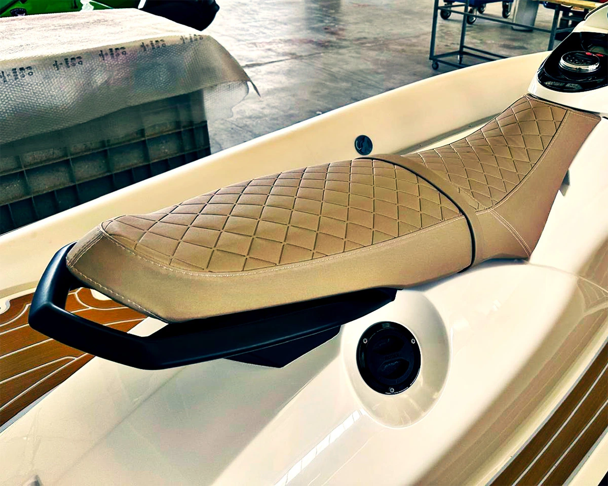 Anche i materiali parlano italiano. Selleria in tessuti tecnici di alta qualità, carene in materiali compositi avanzati, superfici esterne eleganti e resistenti: ogni componente è selezionato per offrire performance, bellezza e durata nel tempo.
